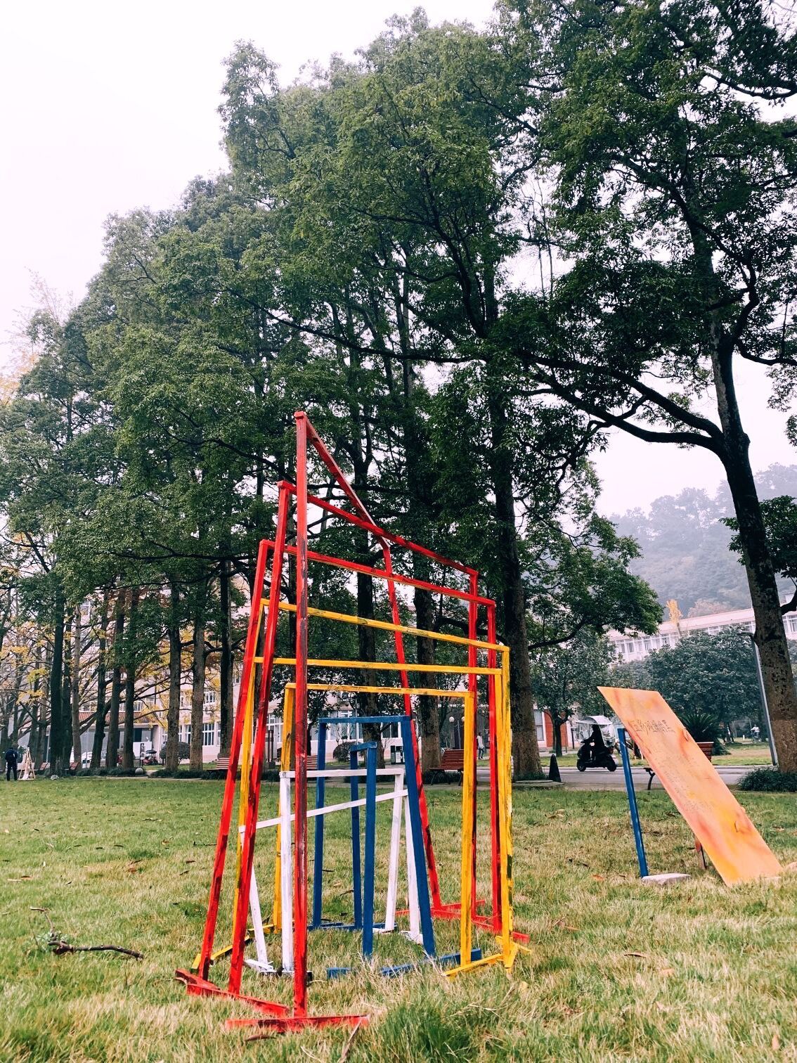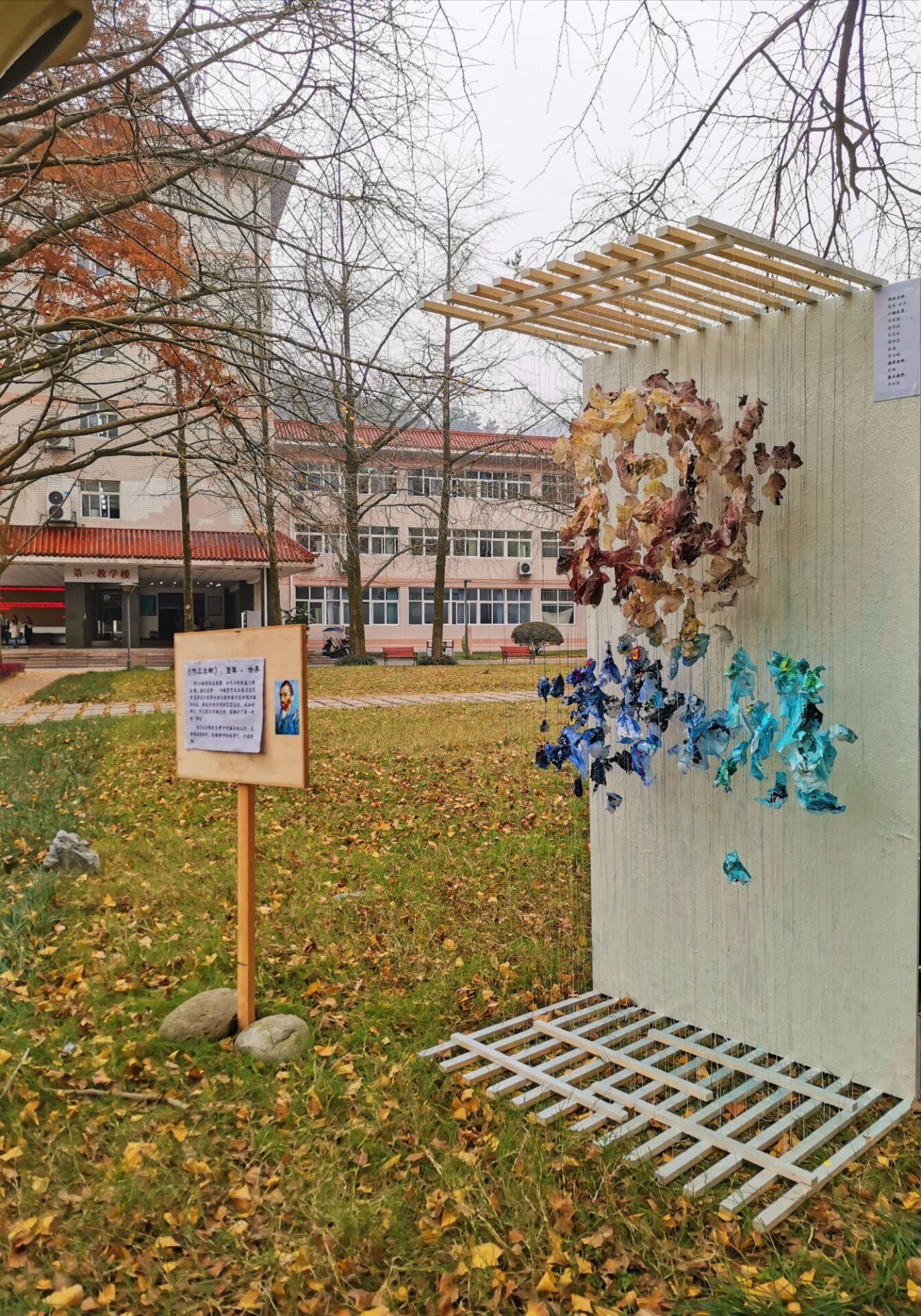 在都江堰校区银杏林举行装置艺术竞赛暨优秀作品展,竞赛依托专业课程《建筑造型基础》的课程作业开展。前期,2019级、2020级建筑学全体同学按照不超过5人一组,自行组队开始课程作业的创作。经过设计方案1稿、2稿、定稿,到电脑模型或小模型制作,再到现场模型制作、修改、提交成品展出,前后历时近1个月。同学们将自己的对建筑的审美、生活的感悟等内容充分融入设计作品中,活动现场不仅仅是设计作品的评定与展示,更是设计理念的交流。来自建筑设计、结构力学、人文美学等课程的专业教师及学生代表对作品进行评选,在整个评选和交流中,建筑设计老师侧重从方案的整体进行评定;结构力学的老师鼓励同学们“只有想不到,没有做不到”;人文美学老师则更多地从视觉感受中寻找力与柔的美学结合。