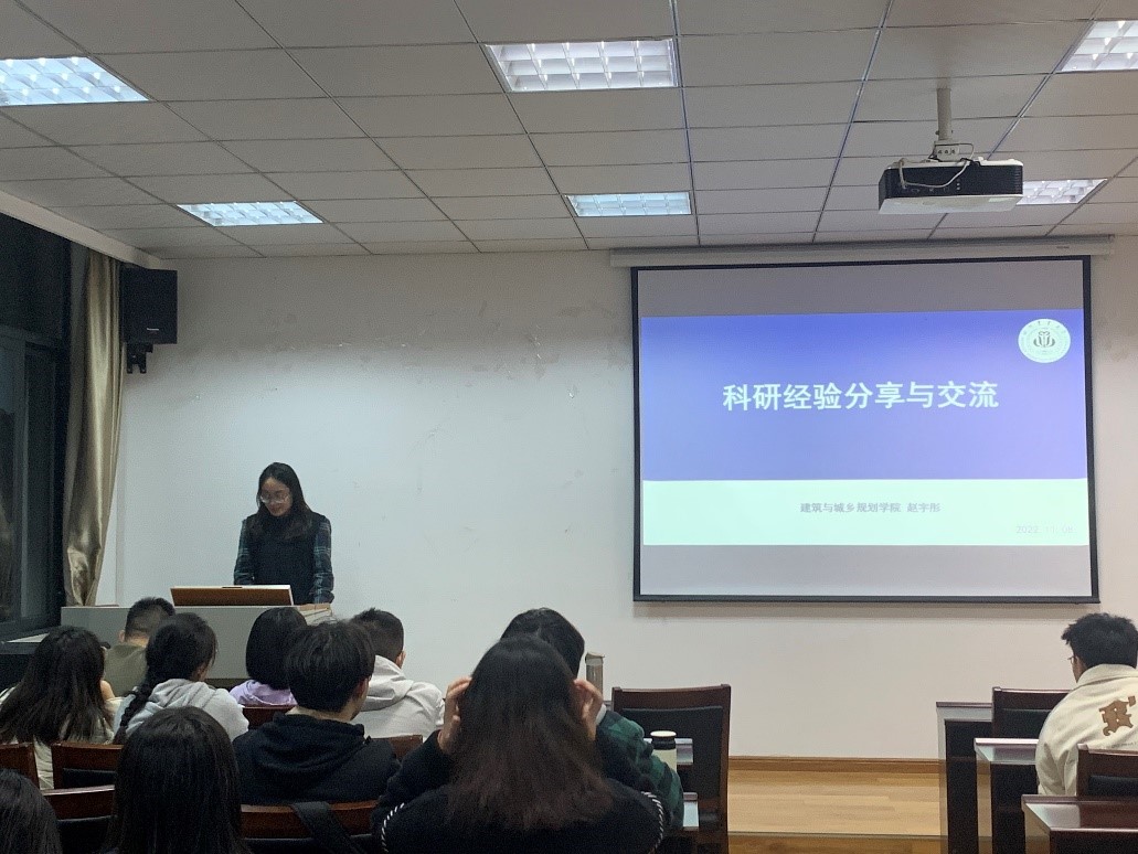 研究生会在2C405开展了以“以研为路,筑梦建城”为主题的科研经验交流与学术知识分享会。本次会议邀请了2020级研究生代佳池、赵宇彤,2021级研究生黄依澄作为优秀研究生代表进行分享。