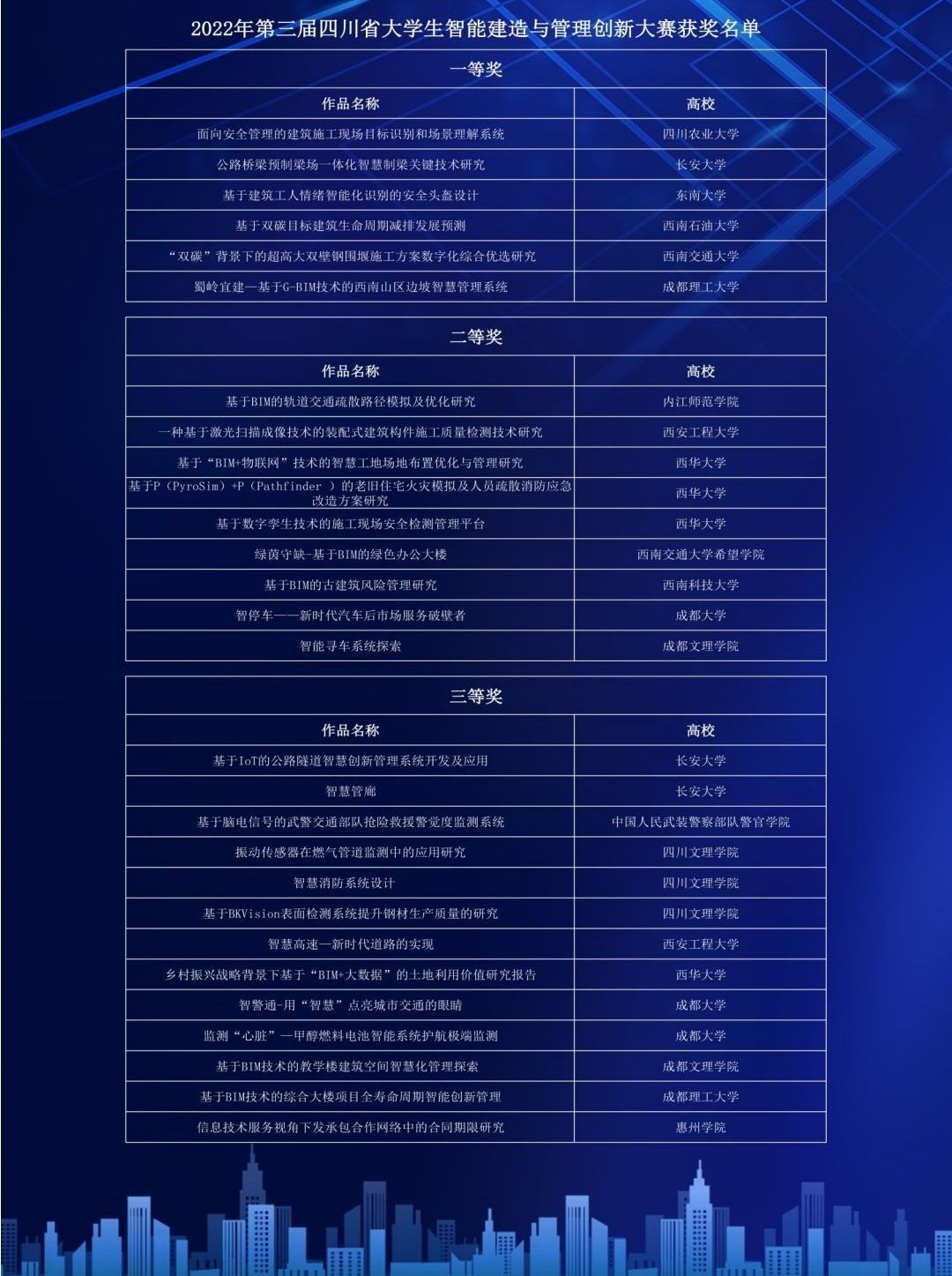 11月19日,由四川省教育厅主办,西南石油大学承办的“第三届四川省大学生智能建造与管理创新大赛”落幕,建城a片网站
