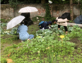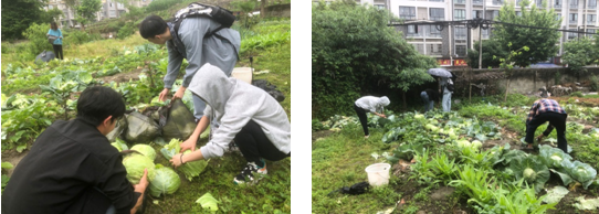 党支部同学的劳动热情、释放劳动潜能,各学生党支部组织支部成员于2022年5月17日星期二,在耕读示范地就“收获莲花白”开展耕读教育活动。